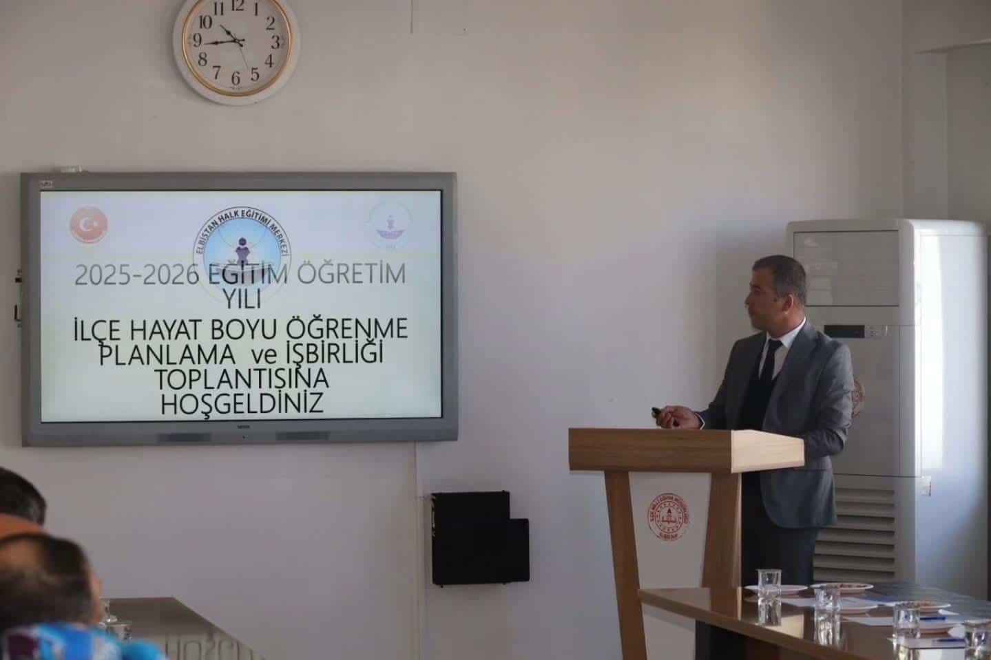 Toplantıda bir sunum yapan Elbistan Halk Eğitim Merkezi Müdürü Sayın Bayram Alış, bu yıl ilçemizde açılması planlanan kurslar ve yapılması planlanan etkinlikler hakkında katılımcılara bilgi verdi.